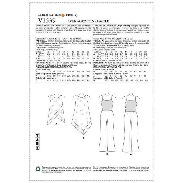 Vogue Pattern V1539 Misses Banded Asymmetrical Hem Tunic And Etsy New Zealand